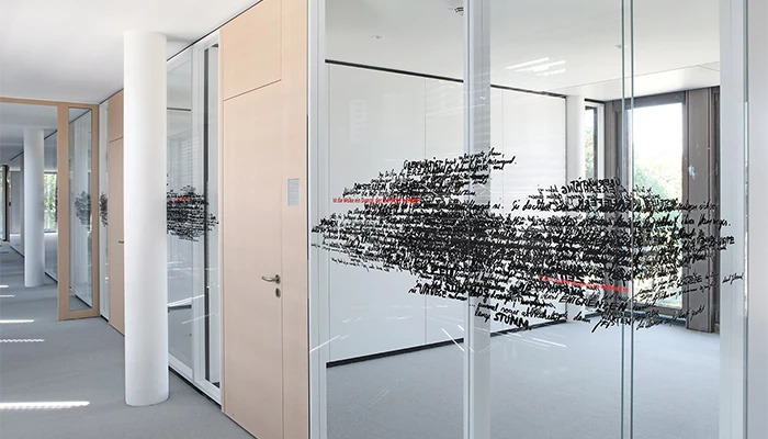 Blinds, window films, curtains, or electrically switchable glass – our solutions combine design and function. With custom-designed films and prints, your space is not only protected but also becomes a brand ambassador: corporate identity and wayfinding systems can be seamlessly integrated. This creates privacy, orientation, and a modern ambiance.