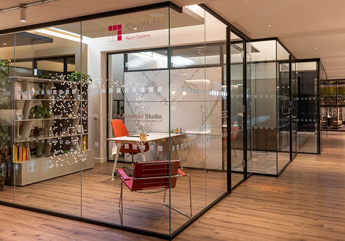 Its compact dimensions guarantee efficient use of space. The L wall provides a protected space for concentrated working.The room-in-room systems from inside combine a high-class design with technology, functionality and quality.