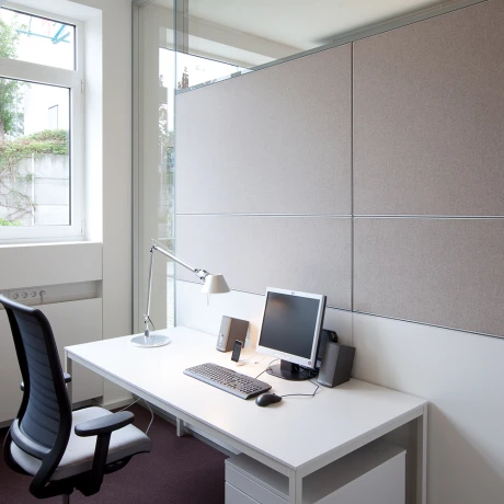 Kommunikationszone, Raum für Teamarbeit oder Besprechungen, ruhige Denkerzelle: Für jeden Nutzungsbereich realisieren wir die passende Lösung. Unsere Trennwandabsorber, Wandabsorber, freistehende Absorber, Deckenabsorber und die Glasakustikwand beeinflussen als Schallabsorber oder Akustik Trennwand die Raumakustik positiv. Auch bei unseren Akustiksystemen achten wir auf hohe Funktionalität und folgen gleichzeitig unserem ästhetischen Anspruch.