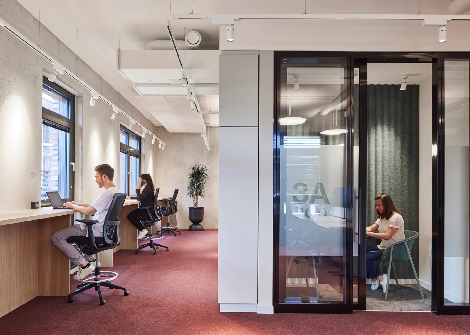 In den neuen Räumlichkeiten in Hamburg setzt AstraZeneca Deutschland auf Activity Based Working, das sogenannte iwork-Konzept. iwork steht für eine neue, aktivitätsorientierte Arbeitsplatzstrategie. Die Mitarbeitenden haben keine festen Arbeitsplätze mehr, sondern können vielmehr täglich aus einem breiten Spektrum an Arbeitsbereichen wählen. Ob nun konzentriert am Schreibtisch oder im dynamischen Austausch im Meeting-Raum: Alle Mitarbeitenden finden in den neuen Büros einen Platz, an dem es sich der Aktivität und den persönlichen Vorstellungen entsprechend arbeiten lässt.