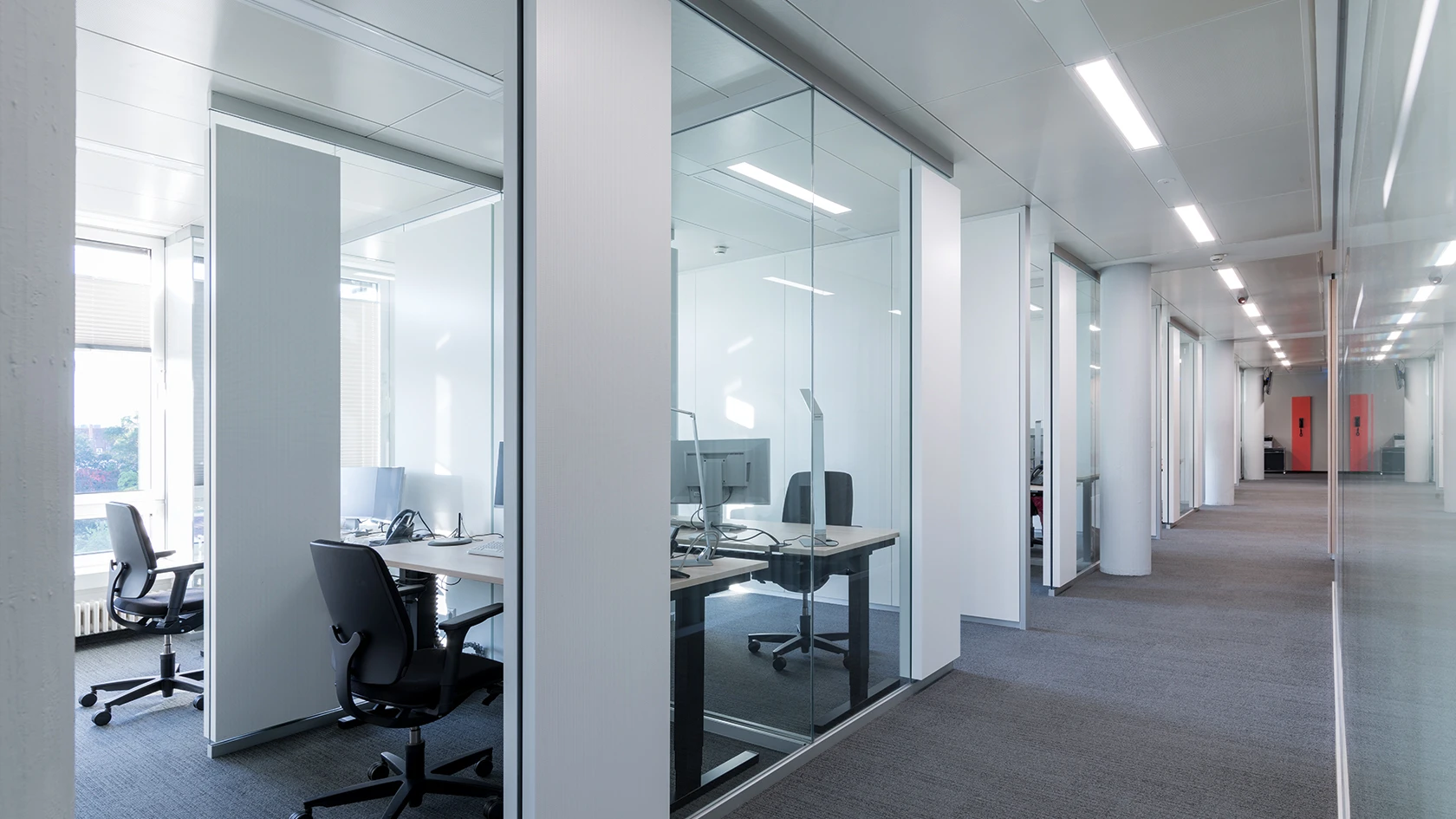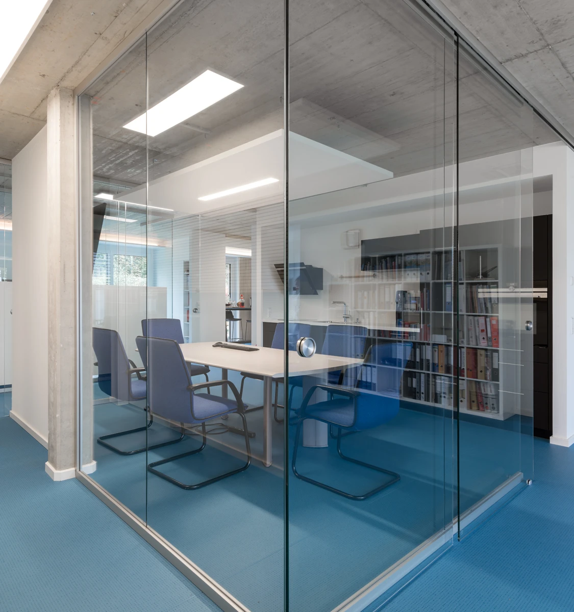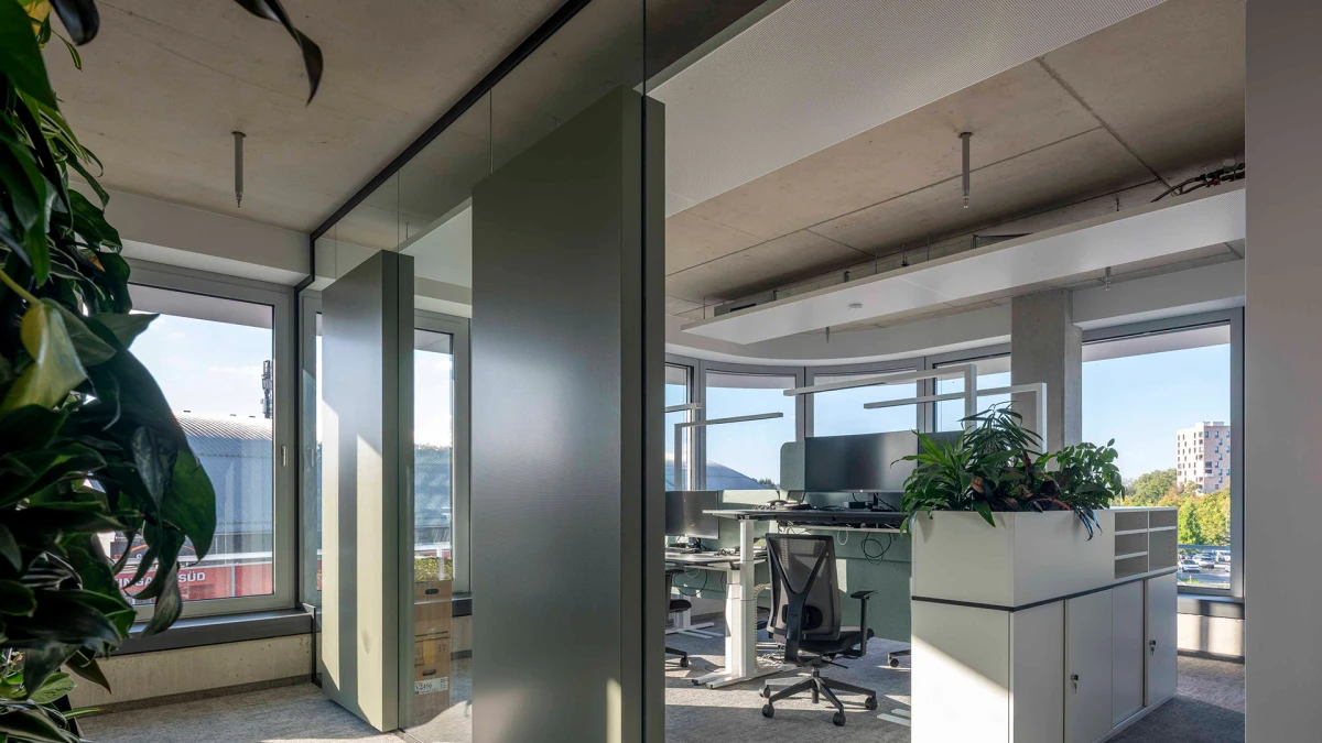 Damit sorgt die Glasakustikwand für eine angenehme Arbeitsatmosphäre und erhält gleichzeitig die Offenheit und Transparenz im Raum, die eine kommunikative Zusammenarbeit fördert.