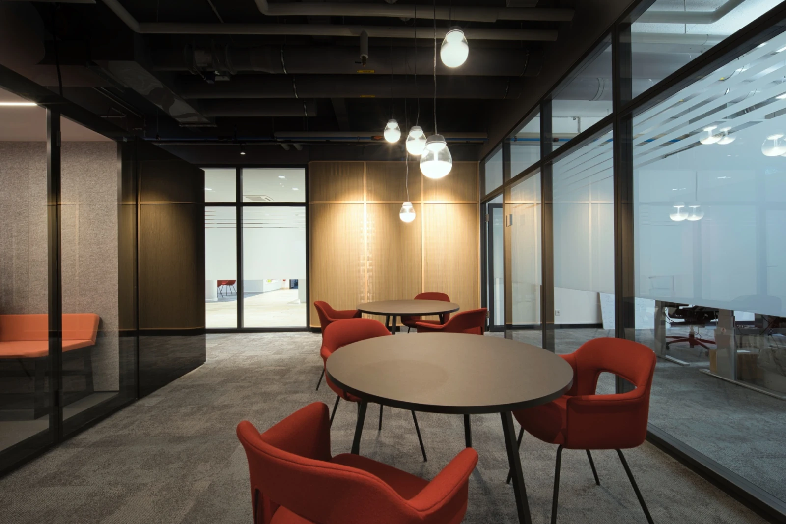 Ergänzend entstand ein flexibles Office-Konzept mit zwei Teamboxen, das Raum für Austausch, Rückzug und informelle Meetings bietet. Ein ganzheitliches Farb-, Licht- und Akustikkonzept, der gezielte Einsatz von Glastrennwänden sowie eine neu strukturierte Wegeführung schaffen Transparenz, Ruhe und klare räumliche Zusammenhänge. Das Ergebnis ist ein moderner, funktionaler und kommunikativer Arbeits- und Empfangsbereich, der den heutigen Anforderungen an Flexibilität und Zusammenarbeit gerecht wird.