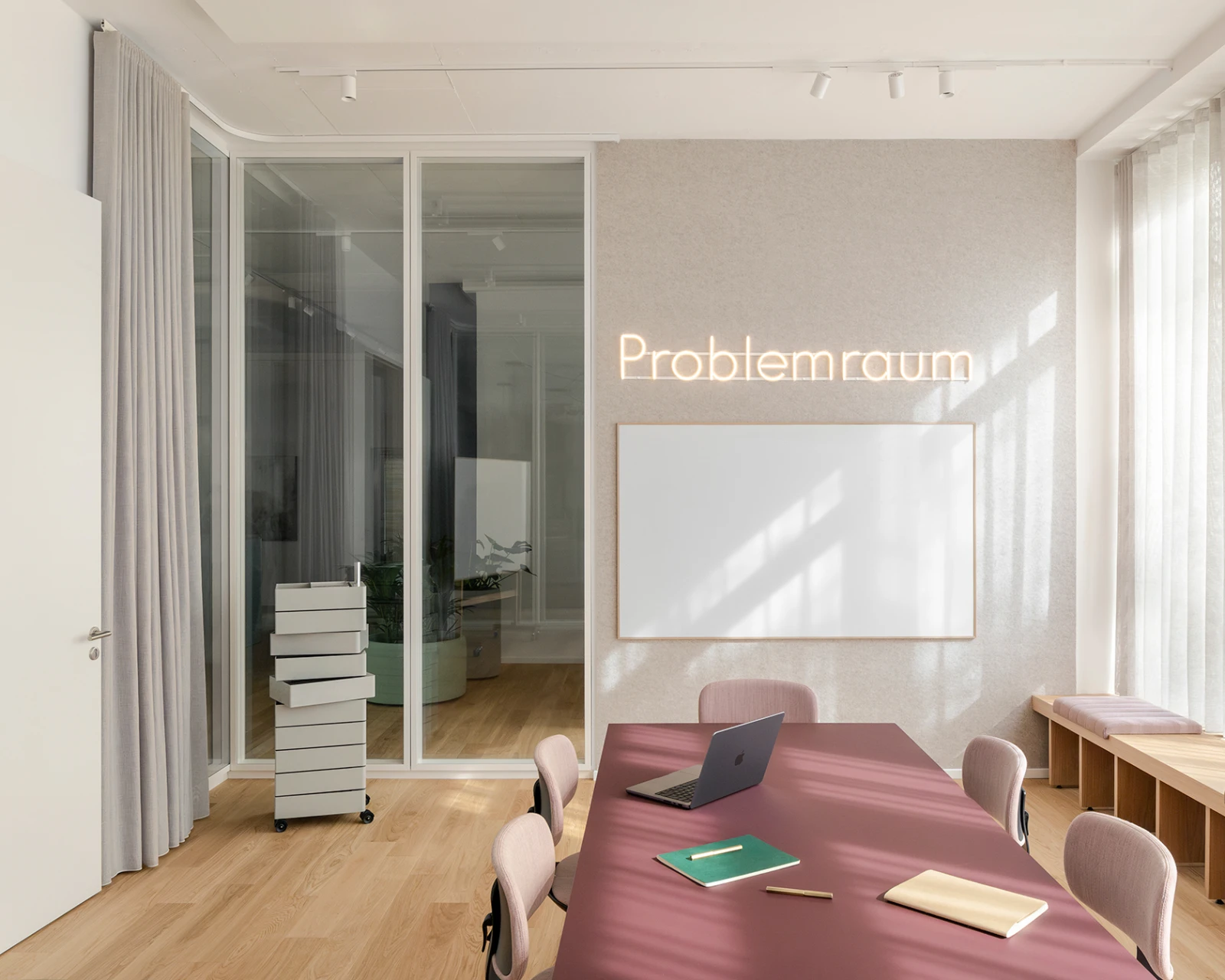 Die Glastrennwände im System 2000 von Strähle unterstreichen die Eleganz und Leichtigkeit der Inneneinrichtung. Die Trennwand besteht aus einem innenliegendem patentiertem Systemständer mit variablen Beplankungsoptionen. Für Diskretion und Vertraulichkeit sorgen die hochschallgedämmten 100 mm Alurahmentüren.