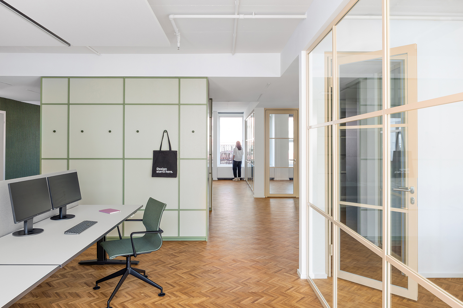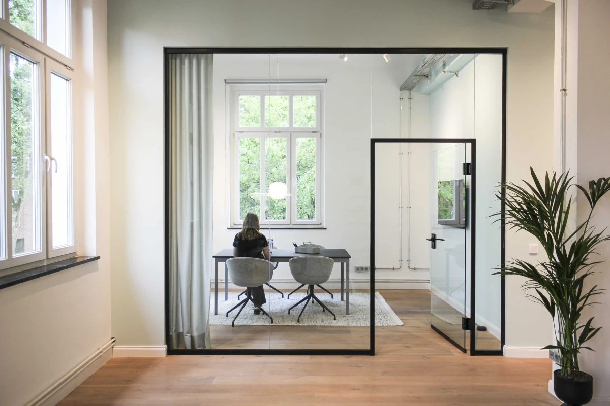 Mit schlanken Profilen und flächenbündigen Glastüren fügt sich das System harmonisch in moderne Arbeitswelten ein. Es bietet nicht nur ein ästhetisches Highlight, sondern überzeugt auch durch hervorragende akustische Eigenschaften – ideal für konzentriertes Arbeiten in offenen Bürokonzepten.